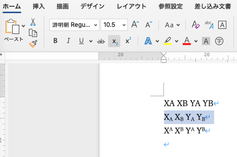 早速Wordの下付きと上付きの方法を見てみましょう。